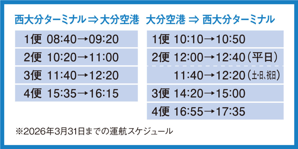 片道運賃は中学生以上2000円、3歳〜小学生1000円(アプリもしくはLINEで事前予約時)。画像は大分空港ホーバーターミナル。