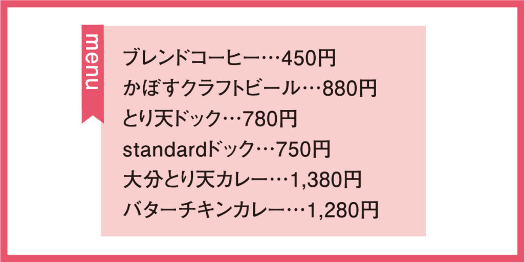 昨年11月にオープンしたカフェ。こだわり抜いた豆をじっくりと抽出したコーヒーは、いつ立ち寄っても変わらない安心感があり、「スタンダード」と呼ぶにふさわしい味わいです。フードメニューは、ホットドッグやカレーなど気軽に楽しめるラインナップが中心。とり天やカボスといった、大分らしい食材やメニューも取り入れられており、食を通して地域の文化や魅力を発信する場としての役割も担っています。